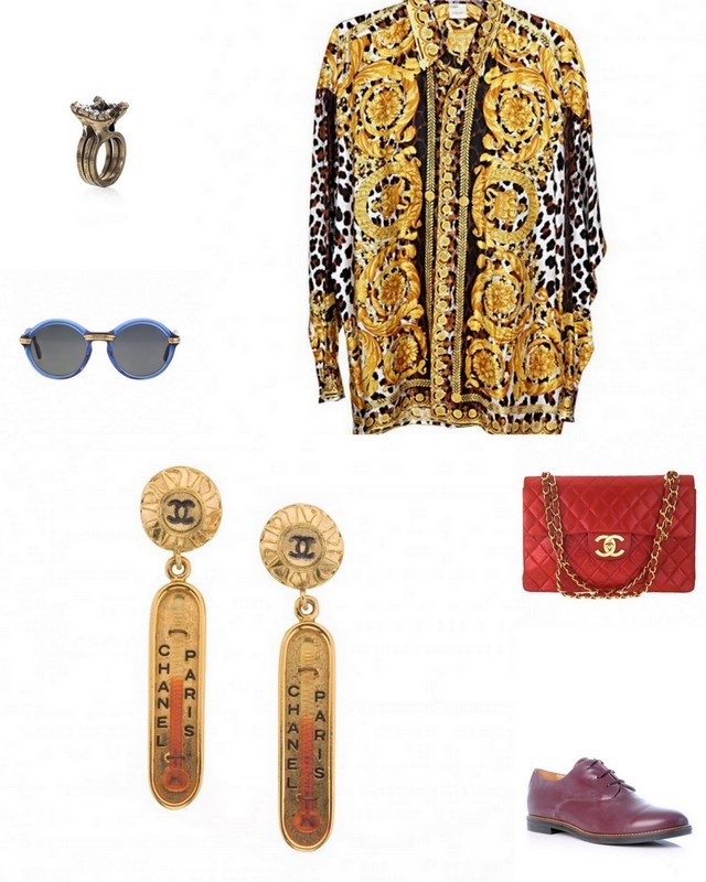 Like a Diamond in the Sky Tuesday, July 24, 2012 The Wish List 1. Dannijo Spilk Triple ring 2. Vintage Gianni Versace Silk Shirt 3. Vintage Cartier Cabriolet Blue sunglasses 4. Vintage Chanel Red Quilted bag 5. Vintage Chanel Thermometer earrings 6. Maison Martin Lace-up shoes